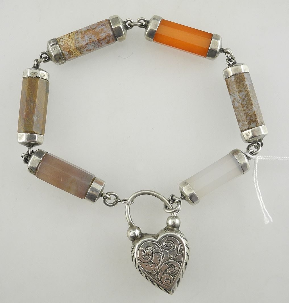 2 Stone Bracelets: Agate (unmarked/7 "L) & Green (marked 925), 9"L, TW 67g.