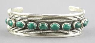 LOT 261 Sterling Silver (marked 925) & Malachite Cuff Bracelet, 2 3/4"w, 37.2g. Estimate: $100 - $150 Sold For: $100 Auction Date: Tuesday, November 05 2024 at 4:00 PM