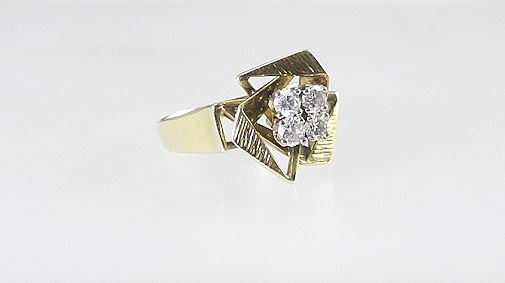 LOT 58 18K (marked) Yellow Gold & Diamond Modernist Ring, Size 7 3/4, 4.45g. Estimate: $200 - $300 Sold For: $400 Auction Date: Tuesday, November 05 2024 at 4:00 PM
