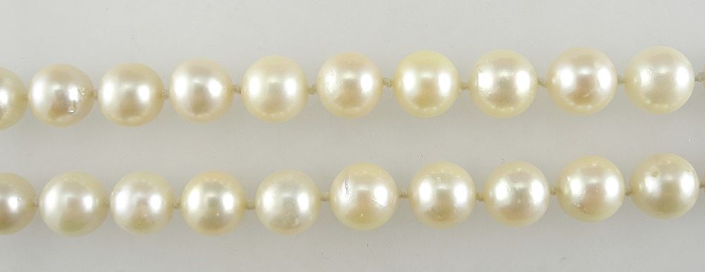 LOT 79 Pearl Necklace, 28" with 14K Gold Clasp. Estimate: $250 - $350 Sold For: $250 Auction Date: Tuesday, November 05 2024 at 4:00 PM