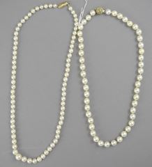 2 Pearl Necklaces with 14K Gold Clasps.