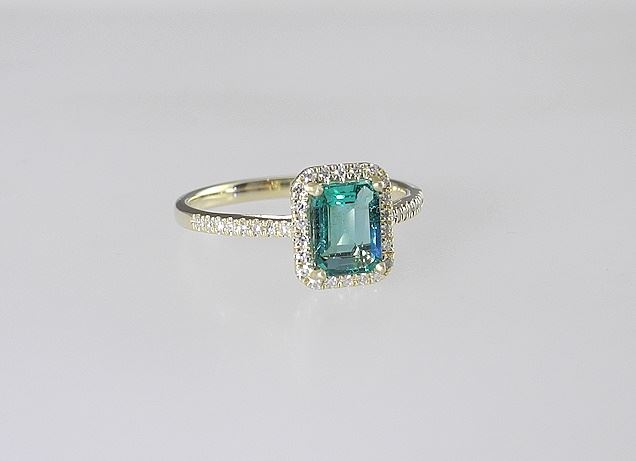 14K (marked) Yellow Gold Natural Emerald & Diamond Ring, Size 7 1/4, 2.3g, with Box.