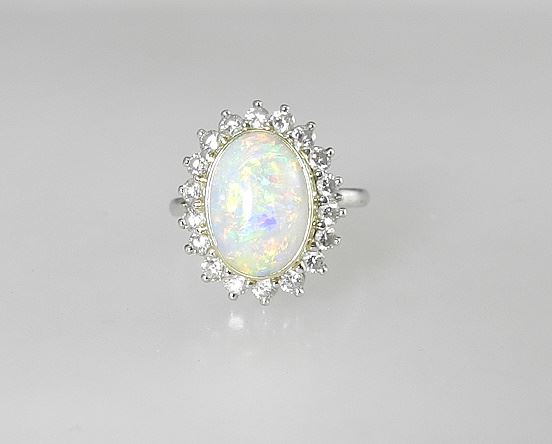 Platinum (marked) & Yellow Gold Opal Cabochon & Diamond Ring, Size 4 7/8, 0.61g with Box.