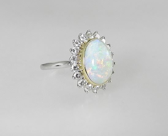 LOT 12 Platinum (marked) & Yellow Gold Opal Cabochon & Diamond Ring, Size 4 7/8, 0.61g with Box. Estimate: $1,000 - $1,500 Sold For: $1,000 Auction Date: Tuesday, November 05 2024 at 4:00 PM