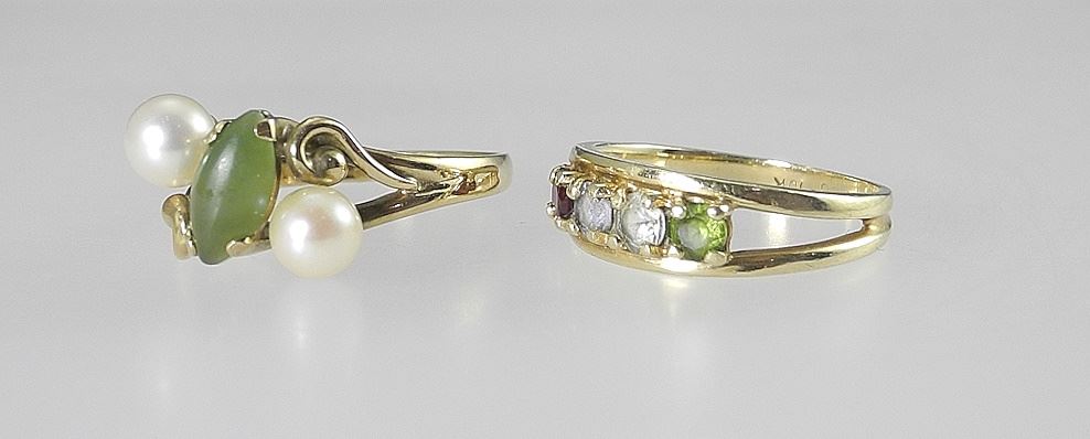 2 X 10K (marked) Yellow Gold Rings with Stone & Pearls, Size 9 & 7 1/2, TW 6.41g, with Box.
