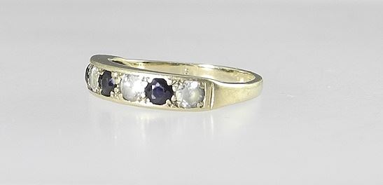 9C (hallmarked) Gold Diamond & Sapphire Ring with Box, Size 6 3/4, 2.6g.