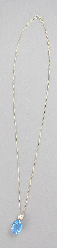 10K (marked) Yellow Gold Necklace (20"L) with Gold Tone Blue Stone Pendant, 7.9g.