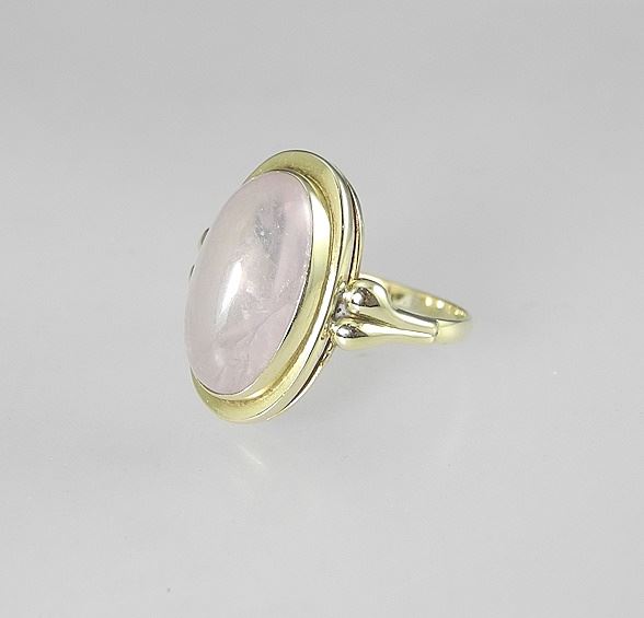 14K (marked 585) Yellow Gold & Rose Quartz with Cabochon Ring, Size 6 1/4, 3.3g.