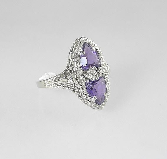 LOT 20 14K (marked) White Gold Art Deco Amethyst Ring with Box, Size 7, 2.3g Estimate: $150 - $200 Sold For: $170 Auction Date: Tuesday, November 05 2024 at 4:00 PM