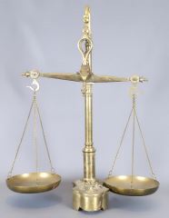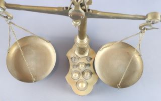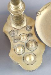 LOT 85 Set of Old Portuguese Brass Counter Scales with Weights, 22 1/2" x 17" x 7 1/2". Estimate: $80 - $140 Sold For: $225 Auction Date: Tuesday, November 05 2024 at 4:00 PM