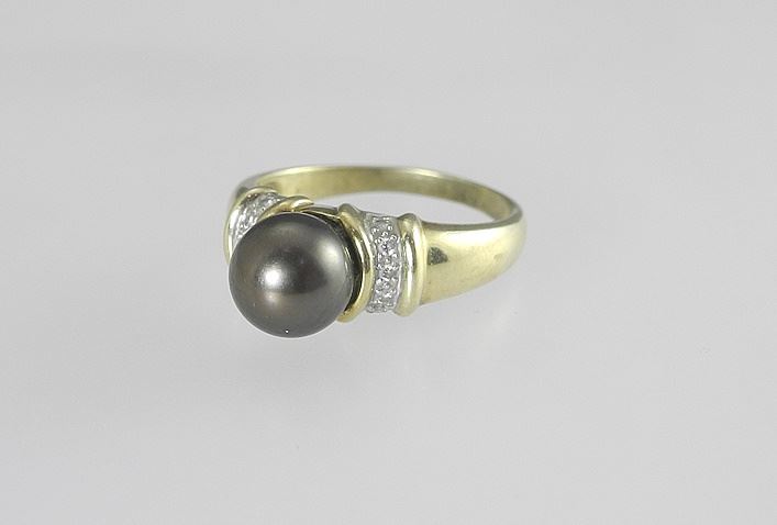 14K Yellow Gold Black Pearl Ring, 5.68g, Size 9 1/4.