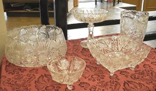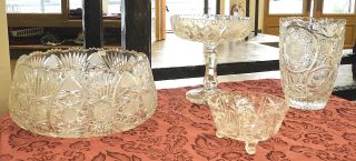LOT 107 5 Pinwheel Crystal Items: Bowl (12" diam.) / Vase / Compote / Dishes. Estimate: $60 - $100 Sold For: $30 Auction Date: Tuesday, November 05 2024 at 4:00 PM