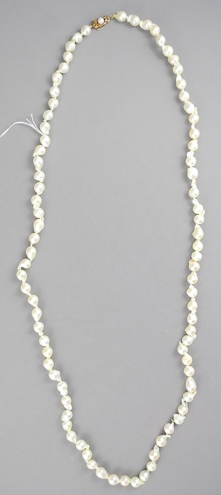 LOT 197 Strand of Freshwater Pearls with 14K (marked) Clasp, 32"L with Pouch. Estimate: $80 - $120 Sold For: $80 Auction Date: Tuesday, November 05 2024 at 4:00 PM