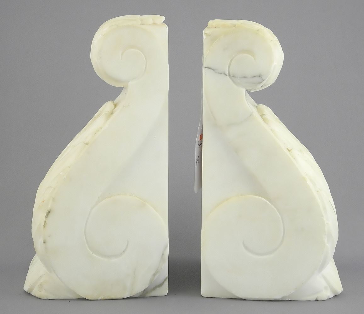 Pair of 'The Gallery' Marble 'Volute & Anthemion' Bookends, 7 1/8"h, Approximately 3880g.