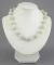 Pale Green Carved Jade Bead Pearl & Gold Spacer Necklace with 14K Gold Clasp
