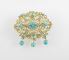 14K (marked) Yellow Gold Brooch/ 28 Natural Turquoise Cabochons with Box.
