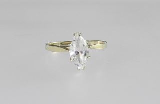 LOT 73 14K (marked) Yellow Gold & Clear Stone (not diamond) Ring, Size 6, 1.83g. Estimate: $100 - $150 Sold For: $110 Auction Date: Tuesday, November 05 2024 at 4:00 PM