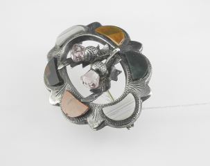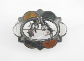 Scottish Silver Amethyst & Agate Brooch, 1 3/4"w, 10.39g.