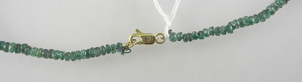 Graduated Strand of Zambian Emeralds with 18K (marked) Clasp, 18"L.