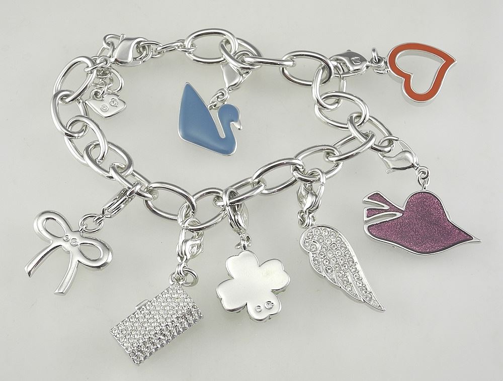 Swarovski Crystal Charm Bracelet, 8" L, 32.2g.