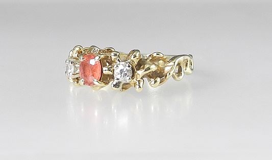 14K (marked) Yellow Gold Diamond & Pink Stone Ring with Box, Size 6, 4.3g.
