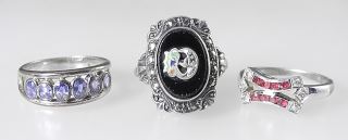 LOT 179 3 Sterling Silver Rings: 2 Thai with C.O.A's/ 1 Odd Fellows with Crystal Stand, TW 9.9g. Estimate: $60 - $100 Sold For: $60 Auction Date: Tuesday, November 05 2024 at 4:00 PM