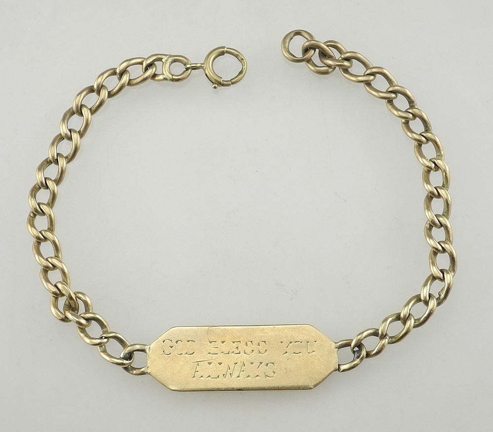 LOT 221 Sweetheart Bracelet, Clasp Marked 9ct, 8 1/2"L, 14.2g. Estimate: $100 - $150 Sold For: $400 Auction Date: Tuesday, November 05 2024 at 4:00 PM