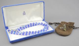 LOT 128 Topaz in Unmarked Silver-Tone Setting (7.82g, Size 4 1/2) with a Blue Crystal Necklace. Estimate: $60 - $100 Sold For: $70 Auction Date: Tuesday, November 05 2024 at 4:00 PM