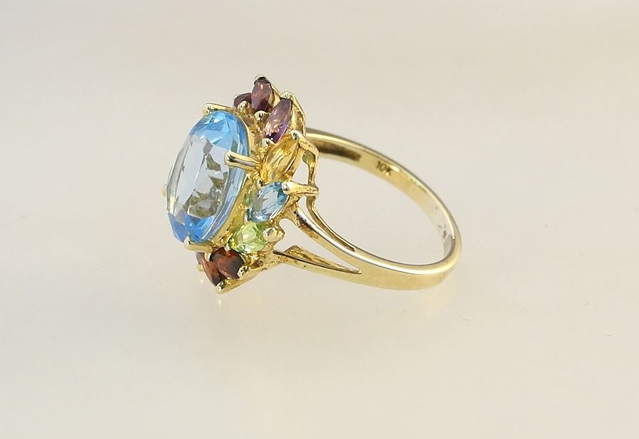 LOT 78 10K (marked) White Gold Swiss Blue Topaz & Multi Gemstone Ring, Size 7, 4.5g. Estimate: $300 - $400 Sold For: $300 Auction Date: Tuesday, November 05 2024 at 4:00 PM