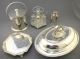 5 Silver Plated Table Wares: Biscuit Barrel (6"h) / Salver / Caddy Cruet.