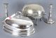 Collection of Antique Silver Plated Wares: Cylinder Dish / OSP Sticks / Cloche