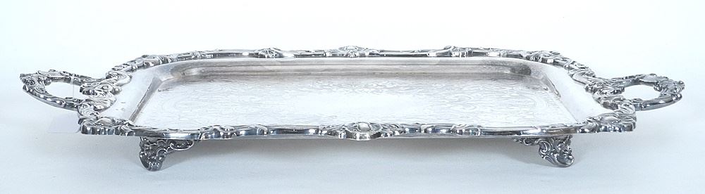 LOT 164 Two Silver Plated Trays, 26" & 27 1/8"W. Estimate: $100 - $150 Auction Date: Tuesday, November 05 2024 at 4:00 PM
