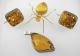 3 Amber Jewelry Items: Pair of Earrings / Pendant / Insect