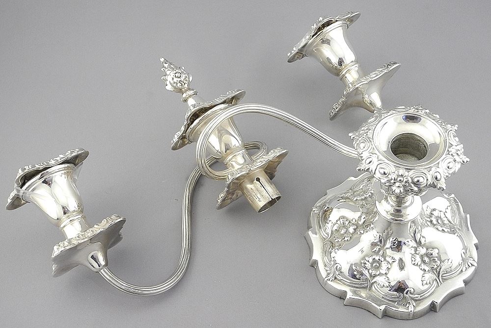 Pair of Birks Regency Plate Convertible Candelabra, 9 5/8".