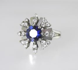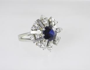 14K White Gold 2.68ct Sapphire Solitaire & Diamond Ring.