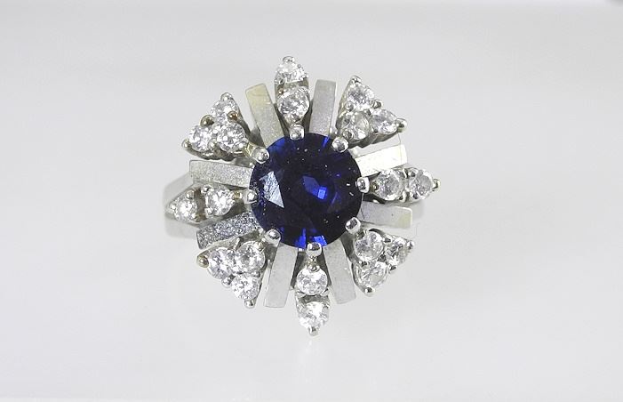 LOT 13 14K White Gold 2.68ct Sapphire Solitaire & Diamond Ring. Estimate: $1,400 - $1,800 Auction Date: Tuesday, December 03 2024 at 4:00 PM