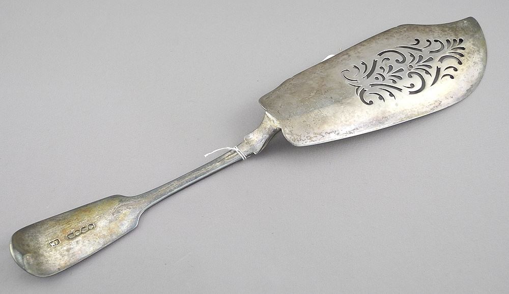 LOT 49 Victorian Hallmarked Silver Fish Slice by WE-London 1841, 12 3/4", 162g. Estimate: $125 - $175 Sold For: $150 Auction Date: Tuesday, December 03 2024 at 4:00 PM