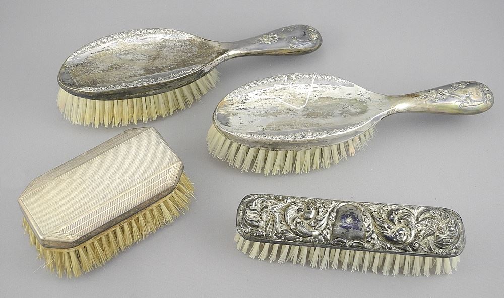 Four Sterling Silver Mounted Dresser Brushes, 9 3/4".