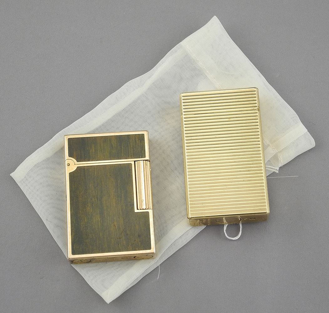 LOT 117 Two St. Dupont Gold Tone Lighters, 2 1/4" & 2 3/8" with Pouch. Estimate: $100 - $150 Sold For: $300 Auction Date: Tuesday, December 03 2024 at 4:00 PM