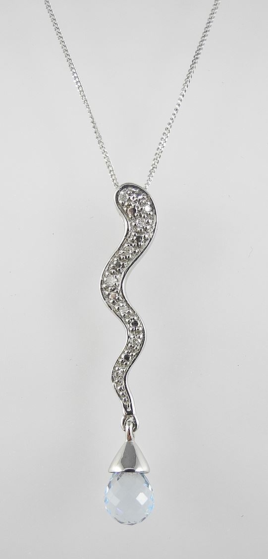 10K (marked 10K & 417) White Gold & Topaz Necklace & Pendant, 16 1/2"L, 1.8g.
