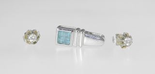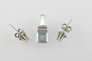 14K (marked) Yellow Gold Topaz Pendant & Pair 10K (marked) Diamond Studs, TW 2.3g.