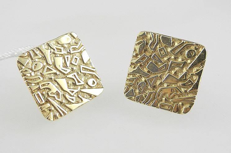 Pair of 14K (marked) Yellow Gold Square Textured Earrings, 3/4"w, 6.5g.