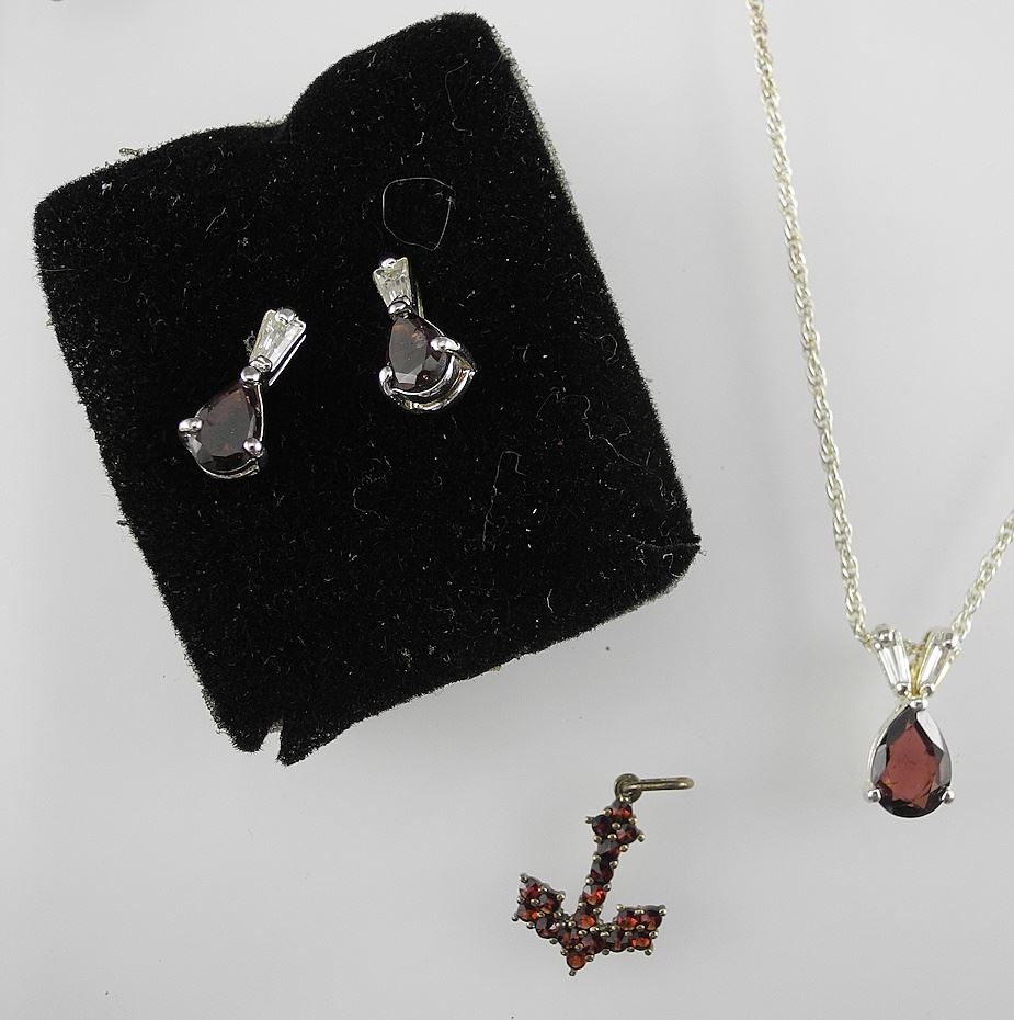Collection of Garnet & Silver Tone Jewelry, 4 Pieces with box, 5g.