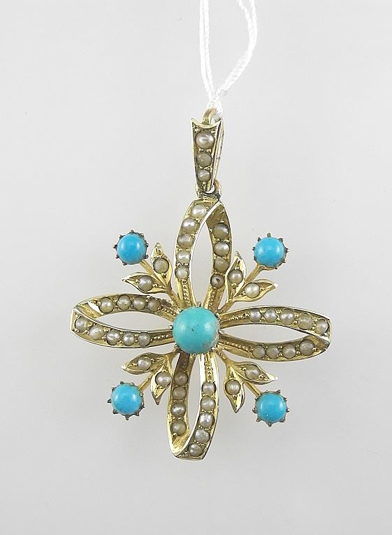 9c Turquoise & Seed Pearl Pendant with Appraisal, 3.7g.