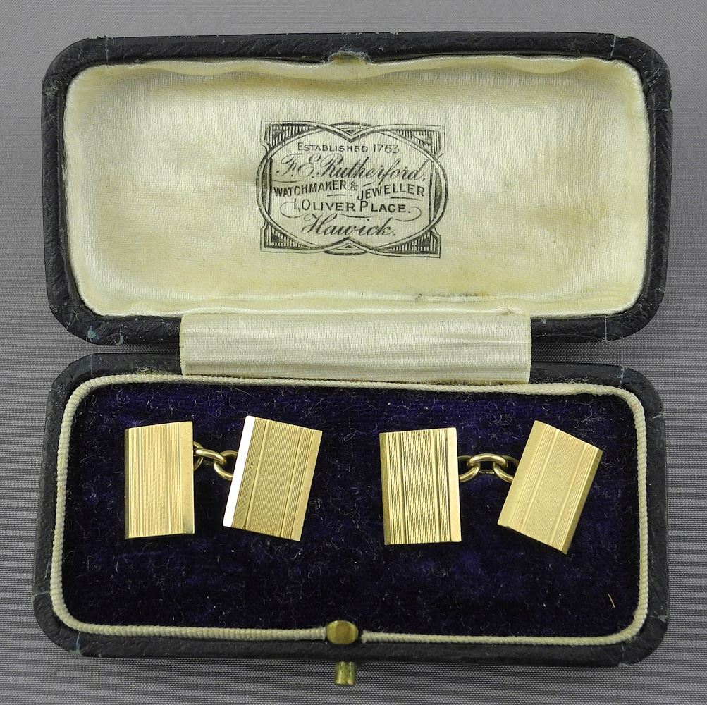 LOT 35 Pair of 9K Gold Cufflinks in Box, 7g Estimate: $100 - $200 Sold For: $225 Auction Date: Tuesday, December 03 2024 at 4:00 PM