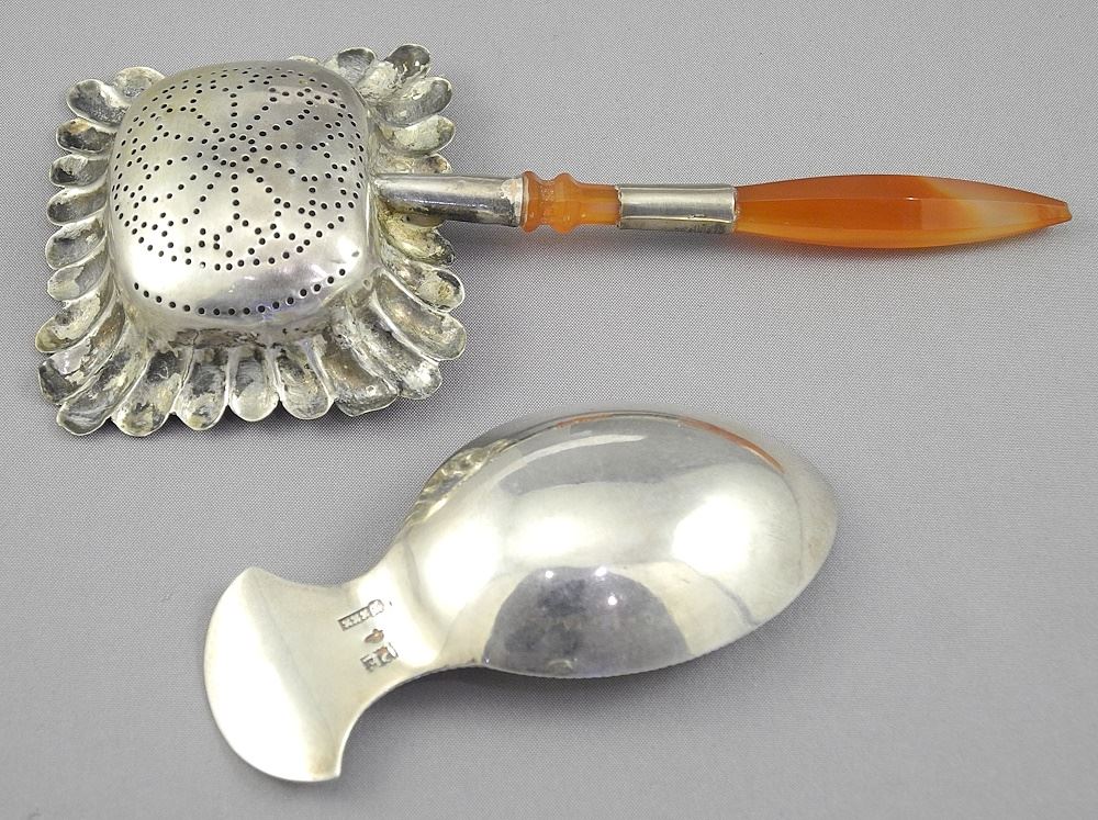 LOT 200 Dutch Silver Tea Scoop & Silver Agate Strainer Spoon, 3" & 5"L, 32g. Estimate: $60 - $100 Sold For: $275 Auction Date: Tuesday, December 03 2024 at 4:00 PM