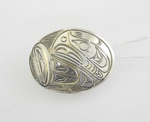 Kwagiulth Silver "Orca" Brooch Monogrammed GH (Graham Henry), 1 1/2 ", 7.6g.