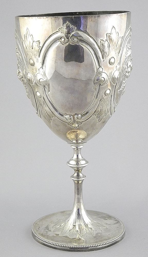 LOT 28 Hallmarked Silver Presentation Goblet, 8"h, 280g. Estimate: $200 - $300 Sold For: $275 Auction Date: Tuesday, December 03 2024 at 4:00 PM