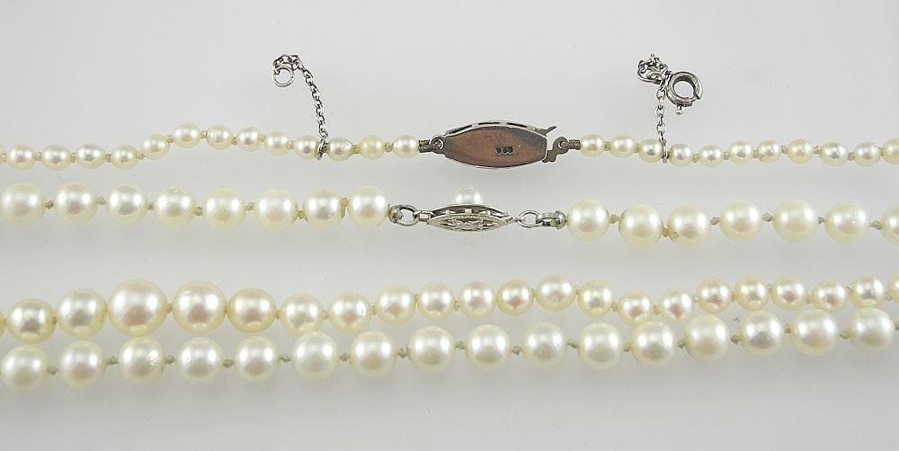 LOT 138 Two Pearl Necklaces, 14K & 935 Silver Clasps, 16 1/2" x 19"L. Estimate: $100 - $150 Sold For: $170 Auction Date: Tuesday, December 03 2024 at 4:00 PM
