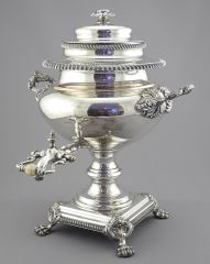 LOT 61 Old Sheffield Plate Hot Water Urn, 14 1/8"h, NO EXPORT. Estimate: $120 - $180 Sold For: $120 Auction Date: Tuesday, December 03 2024 at 4:00 PM